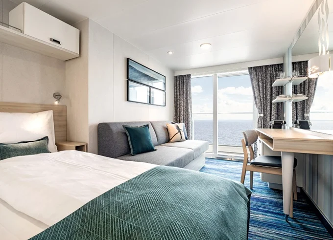 | BKHO - Kajuta s balkónom kat. H 17 m² + balkón 5 m² s obmedzeným výhľadom. 6-9. paluba. Max 3 osoby. | 6 276 € 2 092 € za osobu |