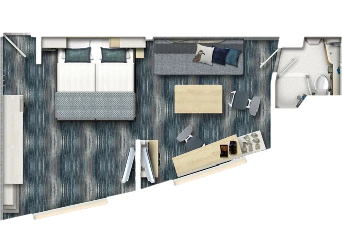 | JKAO - Junior Suite s balkónom 26 m² + balkón 7 m² so stolom. 10,11. paluba. Max 4 osoby. Výhody Junior Suite. | 14 898 € 7 449 € za osobu |